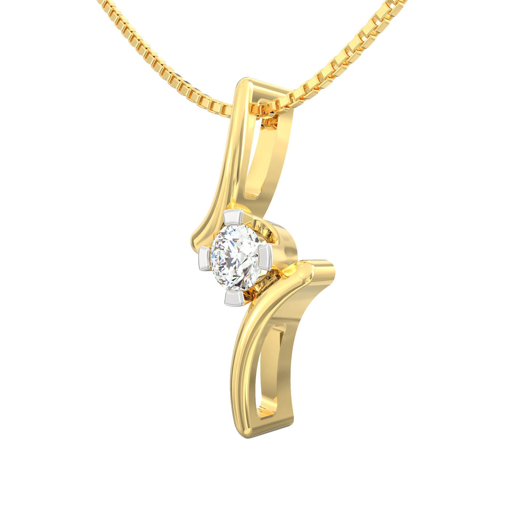 Curved Solitaire Pendant with 0.22 Ct Diamond in 18K Micron Plated Finish