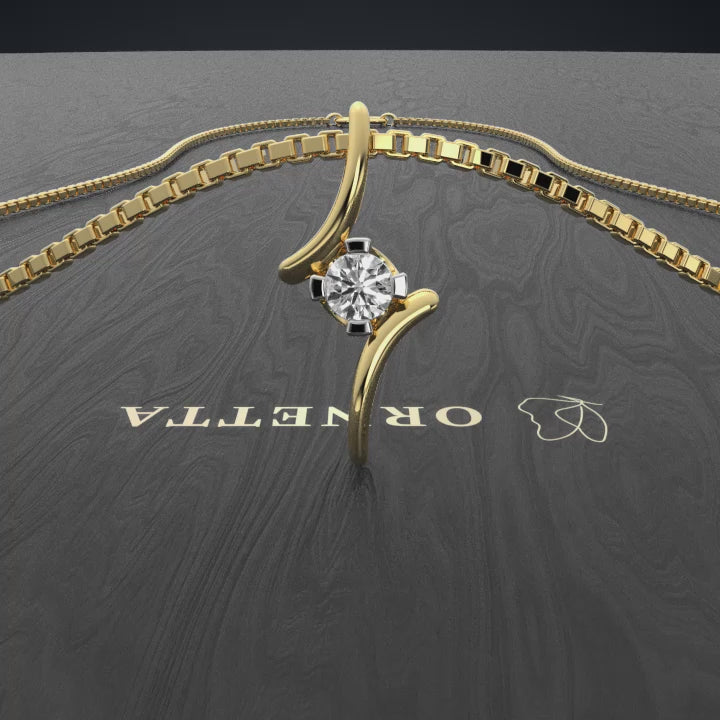 The Curved Solitaire Pendant redefines minimal elegance with a sleek and striking silhouette. Crafted with gently arched lines that meet at the center, this design symbolizes balance and unity. A sparkling 0.22 Ct round lab-grown diamond sits between the curves, giving this pendant its captivating focal point.