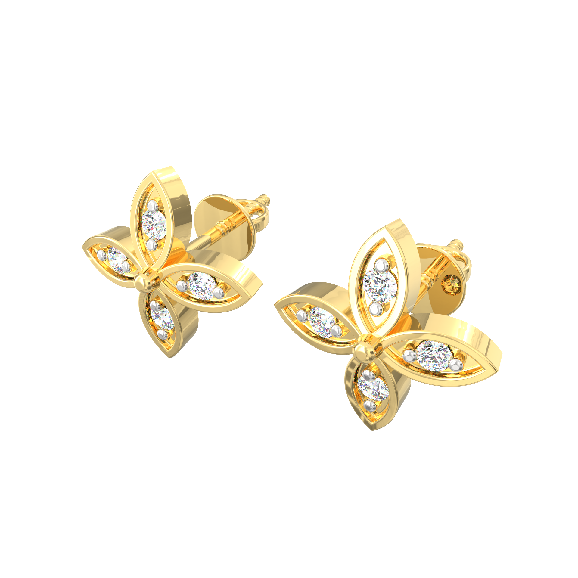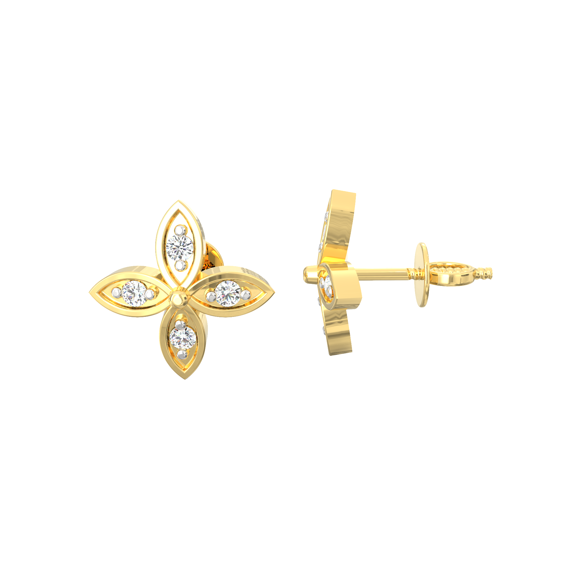 Delicate, radiant, and effortlessly graceful—these floral diamond studs are a celebration of natural beauty. Designed in the shape of a four-petal blossom, each petal is crafted from 925 Sterling Silver and finished in luxurious 18K Micron Plated gold. At the heart of each petal sparkles a round lab-grown diamond, creating a gentle shimmer that catches the light from every angle.