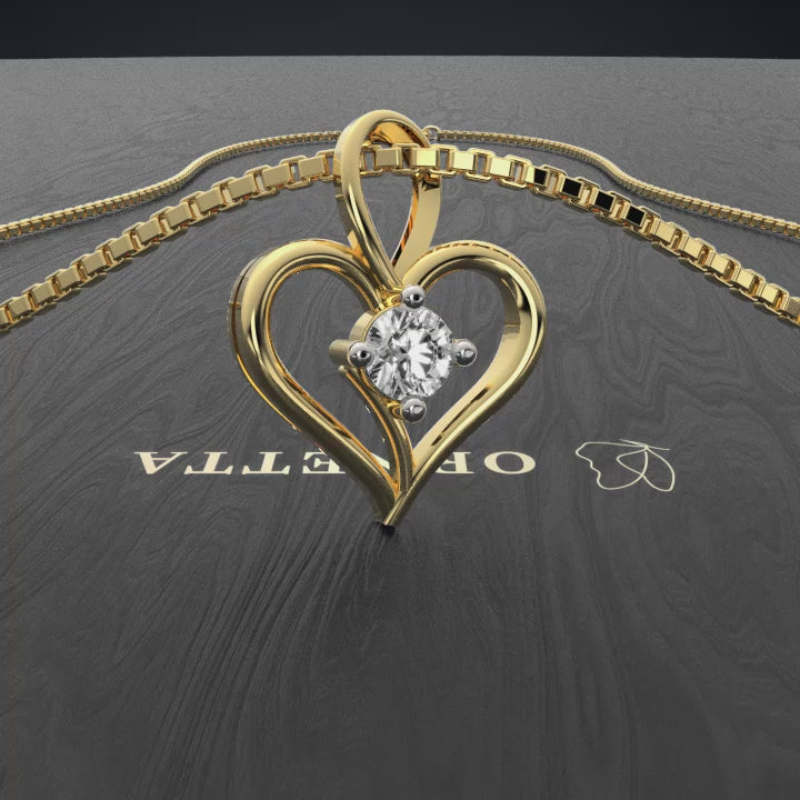 This pendant is more than just a heart—it's a message. With a delicate open-heart design flowing into a looped top, it’s a symbol of infinite love and connection. At the center sits a 0.22 carat round solitaire diamond, securely held by four prongs that let it catch the light from every angle. The curves are fluid, feminine, and perfectly proportioned, giving this piece a graceful silhouette that flatters all necklines.